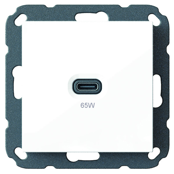 - USB-C Unterputzeinsatz mit Abdeckung (weiß 55x55 mm) zur Installation in Standard-Unterputzdosen Ø 65 mm mit Geräte- schrauben, Einbau nach DIN 49073