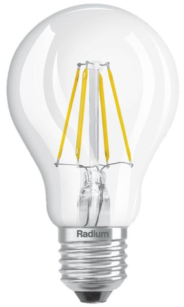 Standard-LED-Lampe zum Austausch mit Glühlampen, Glaskolben klar, nicht dimmbar, Sockel E27. LED-Licht enthält keine UV- oder IR-Strahlung.