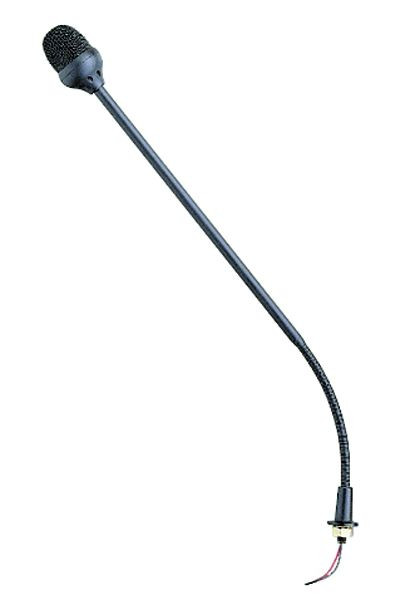 Schwanenhals-Mikrophon, symm., dynamisch mit freien Enden Dynamisches Schwanenhalsmikrophon mit Nierencharakteristik. Das Mikrophon ist sehr rückkoppelungsarm, Wind- und Popschutz sind eingebaut. An der Schwanenhals-Unterseite ist ein Befestigungsgewinde mit der dazu passenden Mutter vorgesehen. Dadurch ist es möglich, das Mikrophon in Verstärker, Bedienpaneele etc. einzubauen. Das Anschlusskabel ist symmetrisch, mit freien Enden (3 Adern). Frequenzbereich: 100 – 15.000 Hz Richtcharakteristik: Niere Nennimpedanz: 600 Ohm Empfindlichkeit: -78 dB, ±3 dB Maße und Gewicht: Ø 32 mm x 390 mm (L), ca. 110 g Zubehör / Lieferumfang: Mutter M8, Zahnscheibe, Unterlegscheibe