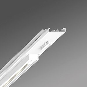 Geräteträger-Einsatz mit integrierter Universal-Dreiphasenstromschiene mit Dali (nutzbare Länge 680 mm) aus verzinktem, profiliertem Stahlblech zur Kombination von Akzent- und Allgemeinbeleuchtung, Oberfläche mit Polyesterharzlack beschichtet, mit zwei Drehverschlüssen für das schnelle Einsetzen in die Tragschiene. Gehäusefarbe verkehrsweiß RAL 9016. Wärmebeständige Leitungen einschließlich festpositioniertem 7-poligen Schnellmontage-Steckerteil mit werkzeugloser Phasenvorwahl und Suchfinger. Geeignet für Leuchten mit 3-Ph.-Stromsch.-Adapter (ET) von Regiolux, Global Trac, Eutrac, Iguzzini, Ivela, Powergear, Reggiani, Targetti, Zumtobel und 5-Ph.Stromsch.-Adapter (DALI) von Regiolux, Global Trac.