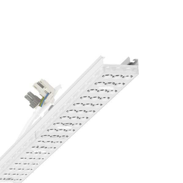 Geräteträger aus verzinktem, profiliertem Stahlblech, Oberfläche mit Polyesterharz beschichtet. Werkzeuglose Befestigung mit design-integrierten Druckverschlüssen gewährleisten einen Diebstahl- und Demontageschutz. In der Tragschiene variabel positionierbar. Gehäusefarbe verkehrsweiß RAL 9016. Lichtverteilung direkt breitstrahlend mittels Individual.Lens.Optic aus Kunststoff PMMA, die Einzellinsenoptik sorgt für eine hohe Montagefreundlichkeit und ist wartungsfreundlich durch leicht zu reinigende Oberfläche. Der Rythmus der 3-reihigen Einzellinsen-Anordnung ist innerhalb und Geräteträger übergreifend perfekt aufeinander abgestimmt und gewährleistet ein homogenes Erscheinungsbild im Objekt. Wärmebeständige Leitungen einschließlich Anschlussleitung 1m und Schnellmontage-Steckerteil mit werkzeugloser Phasenvorwahl und Suchfinger.