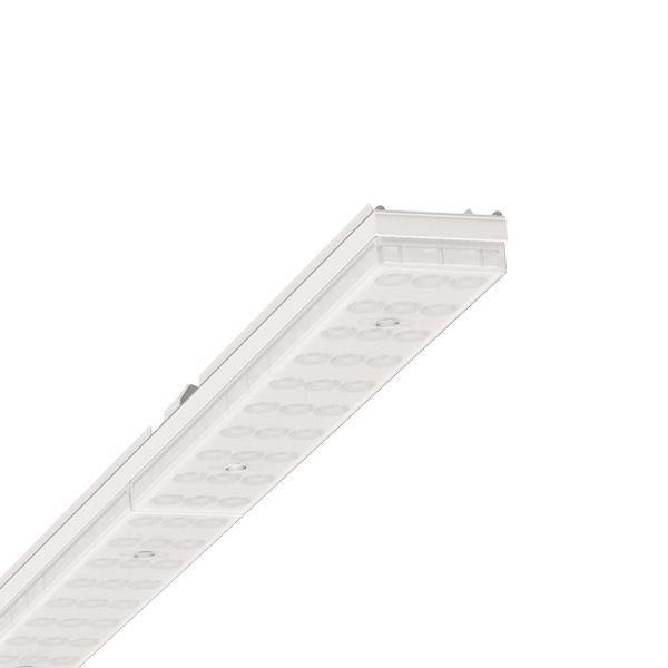 Geräteträger aus verzinktem, profiliertem Stahlblech mit Zinkauflage kombiniert mit Polyesterharzlack gewährleisten einen guten Korrosionschutz, Werkzeuglose Befestigung mit design-integrierten Druckverschlüssen gewährleisten einen Diebstahl- und Demontageschutz. Integrierte Stirnseiten aus Kunststoff mit Dichtlippen und eine umlaufend geschlossene Dichtung zur Tragschiene für Schutzart bis IP64. Lichtverteilung direkt/indirekt diffus-strahlend mittels Individual.Lens.Optic aus Kunststoff PMMA, die Einzellinsenoptik enthält eine transparente Dichtung, sorgt für eine hohe Montagefreundlichkeit und ist wartungsfreundlich durch leicht zu reinigende Oberfläche. Der Rhythmus der 3-reihigen Einzellinsen-Anordnung ist innerhalb und Geräteträger übergreifend perfekt aufeinander abgestimmt und gewährleistet ein homogenes Erscheinungsbild im Objekt.