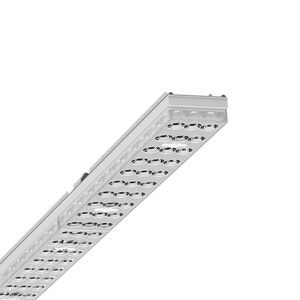 Geräteträger aus verzinktem, profiliertem Stahlblech mit Zinkauflage kombiniert mit Polyesterharzlack gewährleisten einen guten Korrosionschutz, Werkzeuglose Befestigung mit design-integrierten Druckverschlüssen gewährleisten einen Diebstahl- und Demontageschutz. Integrierte Stirnseiten aus Kunststoff mit Dichtlippen und eine umlaufend geschlossene Dichtung zur Tragschiene für Schutzart bis IP64. Lichtverteilung direkt extrem breitstrahlend mittels Individual.Lens.Optic aus Kunststoff PMMA, die Einzellinsenoptik enthält eine transparente Dichtung, sorgt für eine hohe Montagefreundlichkeit und ist wartungsfreundlich durch leicht zu reinigende Oberfläche. Der Rhythmus der 3-reihigen Einzellinsen-Anordnung ist innerhalb und Geräteträger übergreifend perfekt aufeinander abgestimmt und gewährleistet ein homogenes Erscheinungsbild im Objekt. Wärmebeständige Leitungen einschließlich festpositioniertem 3-poligen Schnellmontage-Steckerteil mit werkzeugloser Phasenvorwahl und Suchfinger.