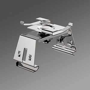 Montage-Zubehör Befestigung für SRT an sichtbarer T-Schiene. Gehäusefarbe metallisch. Geeignet für Deckensystem: Decken mit sichtbaren T-Schienen [s-TS]. Deckenbefestiger, Befestigung für SRT an sichtbarer T-Schiene.