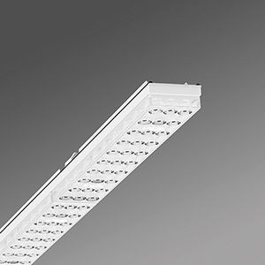 Geräteträger aus verzinktem, profiliertem Stahlblech mit Zinkauflage kombiniert mit Polyesterharzlack gewährleisten einen guten Korrosionschutz, Werkzeuglose Befestigung mit design-integrierten Druckverschlüssen gewährleisten einen Diebstahl- und Demontageschutz. Integrierte Stirnseiten aus Kunststoff mit Dichtlippen und eine umlaufend geschlossene Dichtung zur Tragschiene für Schutzart bis IP64. Gehäusefarbe verkehrsweiß RAL 9016. Lichtverteilung direkt extrem tiefstrahlend mittels Individual.Lens.Optic aus Kunststoff PMMA, mit Regalaufhellung, Die Einzellinsenoptik enthält eine transparente Dichtung, sorgt für eine hohe Montagefreundlichkeit und ist wartungsfreundlich durch leicht zu reinigende Oberfläche. Der Rhythmus der 3-reihigen Einzellinsen-Anordnung ist innerhalb und Geräteträger übergreifend perfekt aufeinander abgestimmt und gewährleistet ein homogenes Erscheinungsbild im Objekt. Elektrische Verbindung mittels festpositioniertem 5-poligen Schnellmontage-Steckerteil mit freier Phasenvorwahl. Integrierte Führungshilfe zum schnellen Kontaktieren.