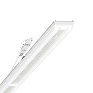 Geräteträger aus verzinktem, profiliertem Stahlblech mit Zinkauflage kombiniert mit Polyesterharzlack gewährleisten einen guten Korrosionschutz, Werkzeuglose Befestigung mit design-integrierten Druckverschlüssen gewährleisten einen Diebstahl- und Demontageschutz. Integrierte Stirnseiten aus Kunststoff mit Dichtlippen und eine umlaufend geschlossene Dichtung zur Tragschiene für Schutzart bis IP64. In der Tragschiene variabel positionierbar. Gehäusefarbe verkehrsweiß RAL 9016. Leistungsstufe: Economy Performance (EP) - Für kostensensible Projekte, hohe Effizienz und Lebensdauer, Lichtverteilung direkt/indirekt diffus-strahlend mittels Central.Line.Optic aus Kunststoff PMMA, die Linsenoptik enthält eine transparente Dichtung, sorgt für eine hohe Montagefreundlichkeit und ist wartungsfreundlich durch leicht zu reinigende Oberfläche. Die Dichte der 1-reihigen Linsen-Anordnung sorgt für ein Verschmelzen der Punkte zu einer Linie mit homogenem Erscheinungsbild im Objekt.