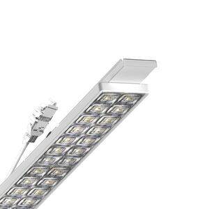 Geräteträger aus verzinktem, profiliertem Stahlblech, Oberfläche mit Polyesterharz beschichtet. Werkzeuglose Befestigung mit design-integrierten Druckverschlüssen gewährleisten einen Diebstahl- und Demontageschutz. In der Tragschiene variabel positionierbar. Lichtverteilung direkt tief-/breitstrahlend mittels OptiLens® aus Kunststoff PMMA, diese verbindet schlankes Design mit herausragender Funktionalität und sorgt für eine gleichmäßige angenehme Oberflächenausleuchtung. Die optisch brillanten, großflächigen, kissenförmigen und homogen ausgeleuchteten Linsen sorgen für eine besondere Ästhetik und einem niedrigen UGR-Wert. Die Lichttechnik reduziert Multishadow-Effekte und realisiert ein ausgewogenes Verhältnis zwischen Effizienz, guter Entblendung und kompakten Abmessungen für außergewöhnlichen Sehkomfort. Geeignet für Bildschirmarbeitsplätze, rundumentblendet 65° < 3000 cd/qm nach aktueller Norm DIN-EN 12464-1. Elektrische Verbindung mittels Anschlussleitung 1 m zur variablen Geräteträgerpositionierung im Lichtband mit 5-poligen Schnellmontage-Steckerteil mit freier Phasenvorwahl.