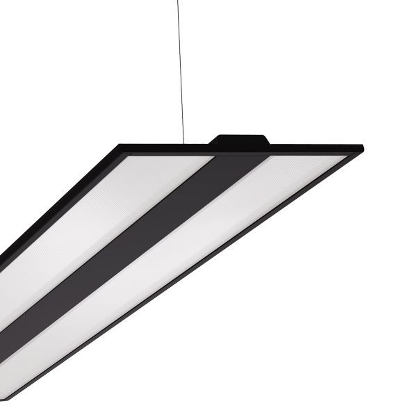 Besonders flach gestaltetes Leuchtengehäuse, Aluminiumstrangpressprofil lackiert, sichtbare Bauhöhe 10/24mm, Gehäusefarbe schwarz RAL 9005. Lichtverteilung direkt/indirekt strahlend mittels Diffusor micro-prismatisch aus PMMA, Langzeit UV-beständig, homogener Lichtsaustritt durch seitliche LED-Lichteinkopplung in hocheffektiver Light Guide Scheibe und semi diffusen weißen Reflektionsschichten, mit spezieller Präzionstechnik für eine definierte Deckenaufhellung. Geeignet für Bildschirmarbeitsplätze, rundumentblendet 65° < 3000 cd/qm nach aktueller Norm DIN-EN 12464-1. LED Treiber Design integriert. Elektrischer Anschluss über integrierte transparente Anschlussleitung 5x0,75mm², Länge 1900mm, Leitungsenden abgemantelt.