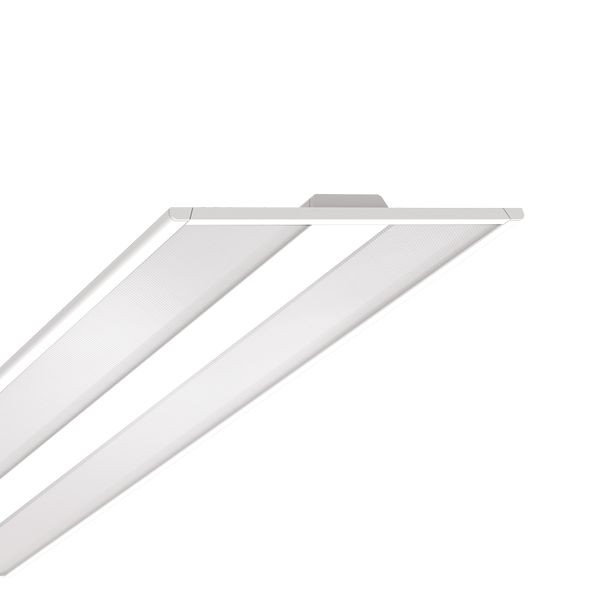 Besonders flach gestaltetes Leuchtengehäuse, Aluminiumstrangpressprofil lackiert, sichtbare Bauhöhe 10/24mm, Gehäusefarbe verkehrsweiß RAL 9016. Lichtverteilung direkt strahlend/indirekt zur Deckenaufhellung mittels Diffusor micro-prismatisch unten / klar oben aus PMMA, Langzeit UV-beständig, homogener Lichtsaustritt durch seitliche LED-Lichteinkopplung in hocheffektiver Light Guide Scheibe und semi diffusen weißen Reflektionsschichten, mit spezieller Präzionstechnik für eine definierte Deckenaufhellung. Geeignet für Bildschirmarbeitsplätze, rundumentblendet 65° < 3000 cd/qm nach aktueller Norm DIN-EN 12464-1. LED Treiber Design integriert. Elektrischer Anschluss über 3-polige Anschlussklemme in Steckkontakt-Technik.