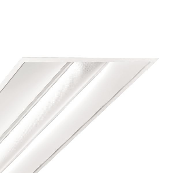 Stahlblechgehäuse geeignet für Decken mit sichtbaren T-Schienen, verdeckt symmetrischen Schienenkonstruktionen und ausgeschnittene Decken, Gehäusefarbe verkehrsweiß RAL 9016. Lichtverteilung direkt strahlend mittels Diffusor micro-prismatisch aus PMMA, nach aussen wird ein weiches Licht mit geeisten Diffusoren weitergegeben, Lichtfarbe neutralweiß (840) mit sehr guter Farbkonsistenz und hoher Farbwiedergabe Ra>80. Geeignet für Bildschirmarbeitsplätze, rundumentblendet 65° < 3000 cd/qm nach aktueller Norm DIN-EN 12464-1. Elektrischer Anschluss über 3-polige Anschlussklemme in Steckkontakt-Technik.