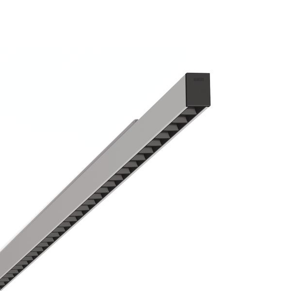 Gehäuse aus Stahlblech im grazilen Rechteckdesign, Stirnseiten Aludruckguss schwarz Lichtverteilung direkt strahlend mittels Micro-Einzel-Raster mit 80°-Linse, schwarz. Geeignet für Bildschirmarbeitsplätze, rundumentblendet 65° < 100 cd/qm nach aktueller Norm DIN-EN 12464-1. Elektrischer Anschluss über 3-polige Anschlussklemme in Steckkontakt-Technik.