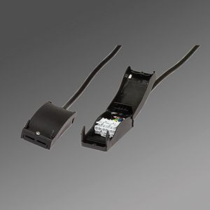 Elektrotechnik-Zubehör DV-BOX ET/ ETM für lowea, panella, scota, relo, tevi und changy. Gehäuse mit glatter Oberfläche aus Kunststoff und Anschlußleitung 3x0,75mm², Gehäusefarbe schwarz RAL 9005. Durchgangsverdrahtungsbox mit Anschluß 3x0,75mm². DV-BOX ET/ ETM für lowea, panella, scota, relo, tevi und changy.