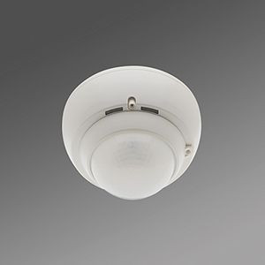 Sensor Licht/Präsenz/HCL für Deckenanbau. Präsenzmelder für Deckenanbau mit integriertem DALI-Controller für HCL, Ansteuerung von bis zu 50 DALI-DT8-Leuchten in max. 3 Funktionsgruppen, integrierte Echtzeituhr, voreingestellte und frei einstellbare HCL-Verlaufskurven, manuelle Bedienung über 3 konventionelle Taster möglich, Erweiterungen über Zubehör möglich, integriertes Schaltrelais, Parametrierung über BLE-IR-Adapter und Smartphone oder Tablet (Android, iOS), Erfassungsbereich kreisförmig 360°, Reichweite: max. Ø 24 m quer, max. Ø 8 m frontal, max. Ø 6,4 m sitzend, Montagehöhe min./max./empfohlen: 2 m / 10 m / 2,5 m