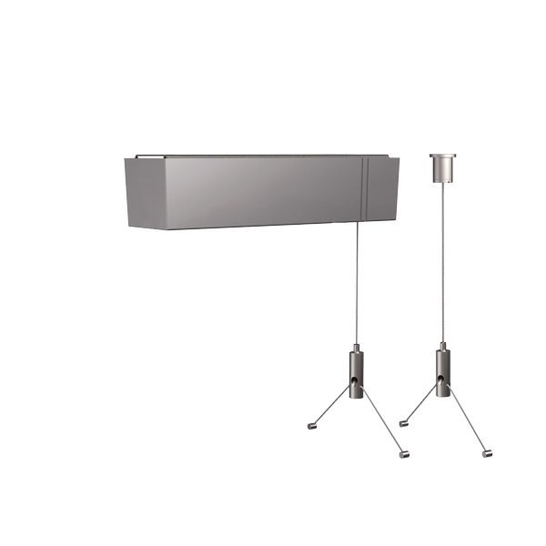 Montage-Zubehör Baldachin rechteckig sg L=160mm, Deckenzylinder metall, Seil D=1,2mm L=1900mm, 2 Querseile L=190mm, ohne Anschlussleitung, für stail. Baldachin rechteckig L=160mm, Deckenzylinder metall, Seil D=1,2mm L=1900mm, 2 Querseile L=190mm, ohne Anschlussleitung, Gehäusefarbe silbergrau/weißaluminium RAL 9006. Y-Seilpendel ohne elektrischem Anschluss, für stail.