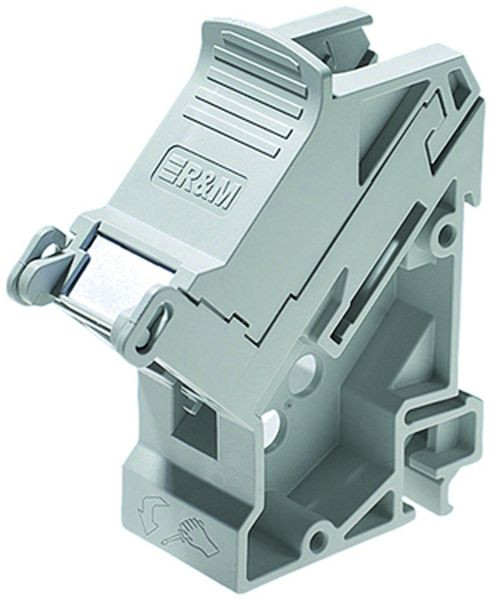 DIN-Schienenadapter DRM45 (R314000), Modul für einen Steckplatz RJ45, LC-Duplex / SC-RJ oder E-2000™-Compact, Farbe lichtgrau (RAL 7035), Kunststoff (PC-GF10), geeignet für RJ45 Anschlussmodule und LWL Verbinder mit Trägerplatte