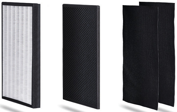 2x Filterschaummatte, 1x Aktivkohlegranulat-Kassette, 1x H13 HEPA-Filter