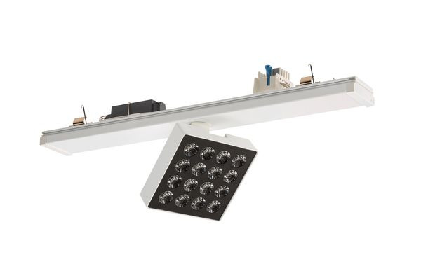 Strahlermodul KARO der RIDI LINIA-Produktfamilie. Lichtlenkung durch Linse aus PMMA klar, Ausstrahlungscharakteristik symmetrisch, Medium, Lichtaustritt direkt. Leuchtmittel LED-M eingebaut, Austausch durch Fachkraft möglich. Die Leuchte generiert einen Bemessungslichtstrom von 3900 lm in Lichtfarbe 830, Lichtstrom einstellbar: Nein. Die hohe LED-Lebensdauer von bis zu 50.000 h ermöglicht einen langen Einsatz bei gleichbleibender Beleuchtungsgüte. Hohe Lichtqualität durch eine Farborttoleranz von < 3 SDCM. Aluminium, verkehrsweiß, ähnlich RAL 9016, Schutzart IP20, Zulässige Umgebungstemperatur -20 - 25 °C. Montage an Tragschiene VLTM … über Federstahlklammern. Mit elektronischem Betriebsgerät On/Off. Austausch durch Fachkraft möglich. Nennspannung 220 - 240 V AC/DC 50 - 60 Hz.