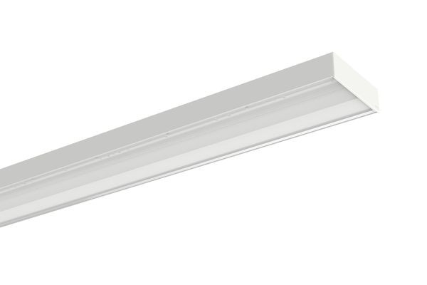 Deckenleuchte aus Stahlblech mit mikroprismatischem Diffusor. Lichtlenkung durch Abdeckung satiniert, Ausstrahlungscharakteristik asymmetrisch, schrägstrahlend, Lichtaustritt direkt. Leuchtmittel LED-M eingebaut, Austausch durch Fachkraft möglich. Die Leuchte generiert einen Bemessungslichtstrom von 5760 lm in Lichtfarbe 840. Die hohe LED-Lebensdauer ermöglicht einen langen Einsatz bei gleichbleibender Beleuchtungsgüte. Hohe Lichtqualität durch eine Farborttoleranz von < 3 SDCM. Lichtstrom in Stufen einstellbar von 3370 - 5760 lm. Gehäuse aus Stahl, verkehrsweiß, ähnlich RAL 9016, Schutzart IP20. Abdeckung aus PMMA klar. Montage als Einzel- oder Bandleuchte, Stirnteile separat zu bestellen. Bei Bandmontage ist der Leuchtenverbinder erforderlich. Durchgangsverdrahtung als Zubehör verfügbar. Mit elektronischem Betriebsgerät. Austausch durch Fachkraft möglich. Bemessungsleistung 37,0 W, Nennspannung 220 - 240 V AC/DC 50 - 60 Hz, Schutzklasse I.