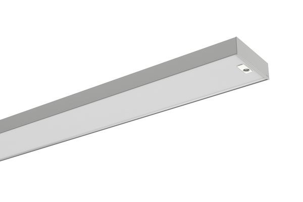 Deckenleuchte aus Stahlblech mit mikroprismatischem Diffusor. Lichtlenkung durch Abdeckung mikroprismatisch, Ausstrahlungscharakteristik symmetrisch, extrem breitstrahlend, Lichtaustritt direkt. Leuchtmittel LED-M eingebaut, Austausch durch Fachkraft möglich. Die Leuchte generiert einen Bemessungslichtstrom von 4760 lm in Lichtfarbe 830. Die hohe LED-Lebensdauer ermöglicht einen langen Einsatz bei gleichbleibender Beleuchtungsgüte. Hohe Lichtqualität durch eine Farborttoleranz von < 3 SDCM. Gehäuse aus Stahl, silber, ähnlich RAL 9006, Schutzart IP20. Abdeckung aus PMMA klar. Montage als Einzel- oder Bandleuchte, Stirnteile separat zu bestellen. Bei Bandmontage ist der Leuchtenverbinder erforderlich. Durchgangsverdrahtung als Zubehör verfügbar. Mit elektronischem Betriebsgerät. Austausch durch Fachkraft möglich. Bemessungsleistung 37,0 W, Nennspannung 220 - 240 V AC 50 - 60 Hz, Schutzklasse I. Mit Licht- und Bewegungsmelder. Erfassungsreichweite quer Ø 5,4 m, Erfassungsfeld 22 m². Einbindung in Casambi-Systeme möglich (Casambi ready). Integrierte Sensorik aus dem APCON EASY BLE Portfolio (Casambi) steuert bis zu 30 DALI Leuchten über den Master.