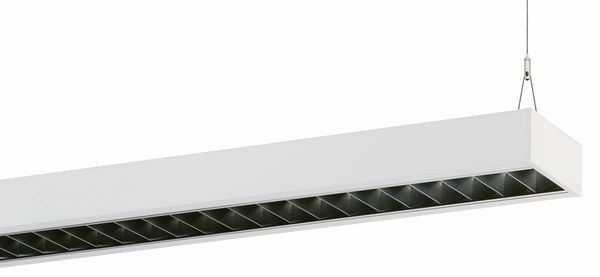 Pendelleuchte der ABRB-Produktfamilie. Lichtlenkung durch Raster, Ausstrahlungscharakteristik symmetrisch, breitstrahlend, Lichtaustritt direkt/indirekt. Leuchtmittel R-TUBE eingebaut, Austausch durch Endkunde möglich. Die Leuchte generiert einen Bemessungslichtstrom von 2620 lm in Lichtfarbe 840, Lichtstrom einstellbar: Nein. Die hohe LED-Lebensdauer ermöglicht einen langen Einsatz bei gleichbleibender Beleuchtungsgüte. Hohe Lichtqualität durch eine Farborttoleranz von < 3 SDCM. Gehäuse aus Stahl, verkehrsweiß, ähnlich RAL 9016, Schutzart IP20. Pendelleuchte für Einzel- und Lichtbandmontage. Elektrischer Anschluss von außen auf der Leuchtenoberseite. Durchgangsverdrahtung verläuft in der Leuchte. Lichtbandmontage mit Leuchtenverbinder ABRBV aus UV-beständigem Kunststoff, separat zu bestellen (siehe Zubehör). Mit elektronischem Betriebsgerät On/Off. Austausch durch Fachkraft möglich. Nennspannung 230 - 240 V AC/DC 50 - 60 Hz.