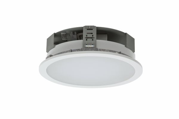 Downlight der EDLR-Produktfamilie. Lichtlenkung durch Abdeckung opal, Ausstrahlungscharakteristik symmetrisch, extrem breitstrahlend, Lichtaustritt direkt. Leuchtmittel LED-M eingebaut, Austausch durch Fachkraft möglich. Die Leuchte generiert einen Bemessungslichtstrom von 2360 lm in Lichtfarbe 830, Lichtstrom einstellbar: Nein. Die hohe LED-Lebensdauer ermöglicht einen langen Einsatz bei gleichbleibender Beleuchtungsgüte. Hohe Lichtqualität durch eine Farborttoleranz von < 3 SDCM. Gehäuse aus Aluminium, weiß, Schutzart IP20. Abdeckung aus PMMA opal. Montage in gesägten Deckenöffnungen. Befestigungsklammern für Klemmdicken von 0 bis 25 mm. Mit elektronischem Betriebsgerät On/Off. Austausch durch Fachkraft möglich. Nennspannung 220 - 240 V AC/DC 50 - 60 Hz.