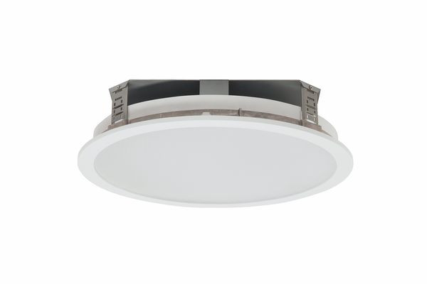 Downlight der EDLR-Produktfamilie. Lichtlenkung durch Abdeckung mikroprismatisch, Ausstrahlungscharakteristik symmetrisch, extrem breitstrahlend, Lichtaustritt direkt. Leuchtmittel LED-M eingebaut, Austausch durch Fachkraft möglich. Die Leuchte generiert einen Bemessungslichtstrom von 4390 lm in Lichtfarbe 840, Lichtstrom einstellbar: stufenlos. Die hohe LED-Lebensdauer ermöglicht einen langen Einsatz bei gleichbleibender Beleuchtungsgüte. Hohe Lichtqualität durch eine Farborttoleranz von < 3 SDCM. Gehäuse aus Aluminium, weiß, Schutzart IP20. Abdeckung aus PMMA strukturiert. Montage in gesägten Deckenöffnungen. Befestigungsklammern für Klemmdicken von 0 bis 25 mm. Mit elektronischem Betriebsgerät DALI-2. Austausch durch Fachkraft möglich. Nennspannung 220 - 240 V AC/DC 50 - 60 Hz.