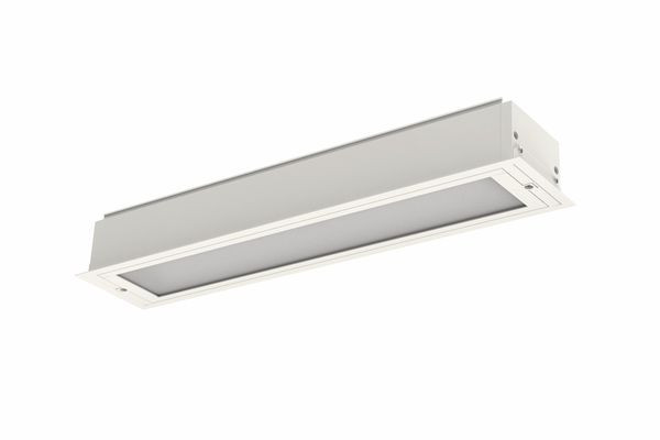 Deckenleuchte der M125-Produktfamilie. Lichtlenkung durch Abdeckung satiniert, Ausstrahlungscharakteristik asymmetrisch, schrägstrahlend, Lichtaustritt direkt. Leuchtmittel LED-M eingebaut, Austausch durch Fachkraft möglich. Die Leuchte generiert einen Bemessungslichtstrom von 1890 lm in Lichtfarbe 840, Lichtstrom einstellbar: stufenlos. Die hohe LED-Lebensdauer ermöglicht einen langen Einsatz bei gleichbleibender Beleuchtungsgüte. Hohe Lichtqualität durch eine Farborttoleranz von < 3 SDCM. Gehäuse aus Aluminium, verkehrsweiß, ähnlich RAL 9016, Schutzart IP65. Abdeckung aus Glas (ESG). Einbaumontage kundenseitig. Beigelegte schutzartbedingte Dichtung. Mit elektronischem Betriebsgerät DALI-2. Austausch durch Fachkraft möglich. Nennspannung 220 - 240 V AC/DC 50 - 60 Hz.