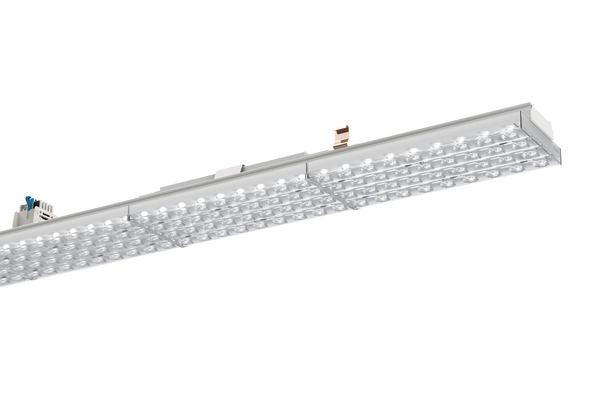 Geräteträger V-LENSES der RIDI LINIA-Produktfamilie. Lichtlenkung durch Linse, Ausstrahlungscharakteristik symmetrisch, breitstrahlend, Lichtaustritt direkt. Leuchtmittel LED-M eingebaut, Austausch durch Fachkraft möglich. Die Leuchte generiert einen Bemessungslichtstrom von 4300 lm in Lichtfarbe 840, Lichtstrom einstellbar: in Stufen. Die hohe LED-Lebensdauer ermöglicht einen langen Einsatz bei gleichbleibender Beleuchtungsgüte. Hohe Lichtqualität durch eine Farborttoleranz von < 3 SDCM. Gehäuse aus Aluminium, verkehrsweiß, ähnlich RAL 9016, Schutzart IP20. Einfaches Einclipsen zur elektrischen Kontaktierung und mechanischen Befestigung im systemgebundenem LINIA Tragschienensystem. Mit elektronischem Betriebsgerät xFlex. Austausch durch Fachkraft möglich. Nennspannung 220 - 240 V AC/DC 50 - 60 Hz.