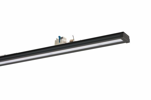 Geräteträger VLGFP der RIDI LINIA-Produktfamilie. Lichtlenkung durch Abdeckung längsprismatisch, Ausstrahlungscharakteristik asymmetrisch, schrägstrahlend, Lichtaustritt direkt. Leuchtmittel LED-M eingebaut, Austausch durch Fachkraft möglich. Die Leuchte generiert einen Bemessungslichtstrom von 7600 lm in Lichtfarbe 840. Die hohe LED-Lebensdauer ermöglicht einen langen Einsatz bei gleichbleibender Beleuchtungsgüte. Hohe Lichtqualität durch eine Farborttoleranz von < 3 SDCM. Lichtstrom in Stufen einstellbar von 3500 - 7600 lm. Gehäuse aus Aluminium, schwarz, ähnlich RAL 9005, Schutzart IP54. Einfaches Einclipsen zur elektrischen Kontaktierung und mechanischen Befestigung im systemgebundenem LINIA Tragschienensystem. Mit elektronischem Betriebsgerät xFlex. Austausch durch Fachkraft möglich. Nennspannung 220 - 240 V AC/DC 50 - 60 Hz.
