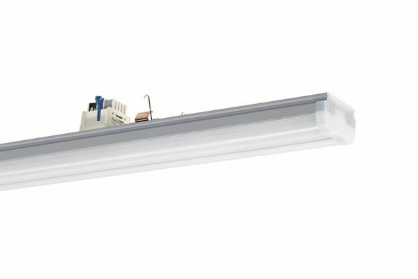 Geräteträger VLGFP der RIDI LINIA-Produktfamilie. Lichtlenkung durch Abdeckung opal, Ausstrahlungscharakteristik symmetrisch, diffus strahlend, Lichtaustritt direkt. Leuchtmittel LED-M eingebaut, Austausch durch Fachkraft möglich. Die Leuchte generiert einen Bemessungslichtstrom von 8000 lm in Lichtfarbe 840. Die hohe LED-Lebensdauer ermöglicht einen langen Einsatz bei gleichbleibender Beleuchtungsgüte. Hohe Lichtqualität durch eine Farborttoleranz von < 3 SDCM. Lichtstrom in Stufen einstellbar von 3900 - 8000 lm. Gehäuse aus Aluminium, silber, ähnlich RAL 9006, Schutzart IP40. Einfaches Einclipsen zur elektrischen Kontaktierung und mechanischen Befestigung im systemgebundenem LINIA Tragschienensystem. Mit elektronischem Betriebsgerät xFlex. Austausch durch Fachkraft möglich. Nennspannung 220 - 240 V AC/DC 50 - 60 Hz.