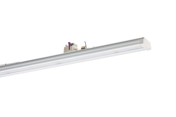 Geräteträger VLGFP der RIDI LINIA-Produktfamilie. Lichtlenkung durch Abdeckung längsprismatisch, Ausstrahlungscharakteristik symmetrisch, breitstrahlend, Lichtaustritt direkt. Leuchtmittel LED-M eingebaut, Austausch durch Fachkraft möglich. Die Leuchte generiert einen Bemessungslichtstrom von 7990 lm in Lichtfarbe 840. Die hohe LED-Lebensdauer ermöglicht einen langen Einsatz bei gleichbleibender Beleuchtungsgüte. Hohe Lichtqualität durch eine Farborttoleranz von < 3 SDCM. Gehäuse aus Stahl, verkehrsweiß, ähnlich RAL 9016, Schutzart IP54. Einfaches Einclipsen zur elektrischen Kontaktierung und mechanischen Befestigung im systemgebundenem LINIA Tragschienensystem. Mit elektronischem Betriebsgerät DALI-2. Austausch durch Fachkraft möglich. Nennspannung 220 - 240 V AC/DC 50 - 60 Hz.