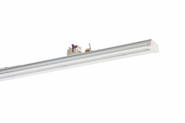 Geräteträger VLGFL der RIDI LINIA-Produktfamilie. Lichtlenkung durch Linse, Ausstrahlungscharakteristik symmetrisch, extrem tiefstrahlend, Lichtaustritt direkt. Leuchtmittel LED-M eingebaut, Austausch durch Fachkraft möglich. Die Leuchte generiert einen Bemessungslichtstrom von 4450 lm in Lichtfarbe 830. Die hohe LED-Lebensdauer ermöglicht einen langen Einsatz bei gleichbleibender Beleuchtungsgüte. Hohe Lichtqualität durch eine Farborttoleranz von < 3 SDCM. Gehäuse aus Stahl, verkehrsweiß, ähnlich RAL 9016, Schutzart IP54. Einfaches Einclipsen zur elektrischen Kontaktierung und mechanischen Befestigung im systemgebundenem LINIA Tragschienensystem. Mit elektronischem Betriebsgerät DALI-2. Austausch durch Fachkraft möglich. Nennspannung 220 - 240 V AC/DC 50 - 60 Hz.