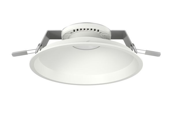 Downlight der EDLR-E2-Produktfamilie. Lichtlenkung durch Reflektor, Ausstrahlungscharakteristik symmetrisch, extrem breitstrahlend, Lichtaustritt direkt. Leuchtmittel LED-M eingebaut, Austausch durch Fachkraft möglich. Die Leuchte generiert einen Bemessungslichtstrom von 1260 lm in Lichtfarbe 830, Lichtstrom einstellbar: Nein. Die hohe LED-Lebensdauer ermöglicht einen langen Einsatz bei gleichbleibender Beleuchtungsgüte. Hohe Lichtqualität durch eine Farborttoleranz von < 3 SDCM. Gehäuse aus Kunststoff, verkehrsweiß, ähnlich RAL 9016, Schutzart IP20