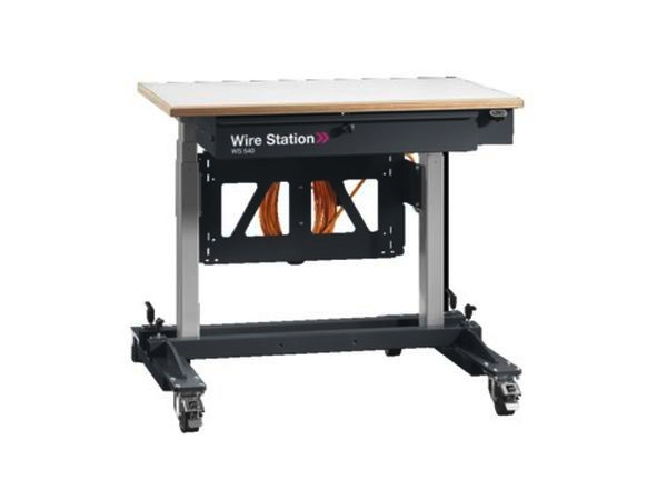 Höhenverstellbarer Verdrahtungsarbeitsplatz für flexible und ergonomische Nutzung in der Werkstatt.