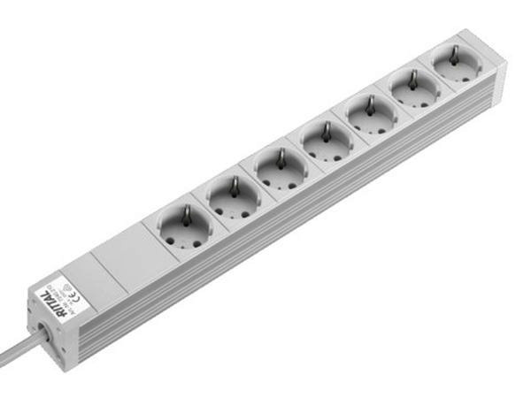 ohne Schalter DK Steckdosenleiste, Schuko (Typ F, CEE 7/3), 7-fach, 230 V, 16 A, LHT: 482,6x44x44 mm, Anschlusskabel mit Aderendhülsen, Länge: 2 m, Aluminiumprofil, natur eloxiert
