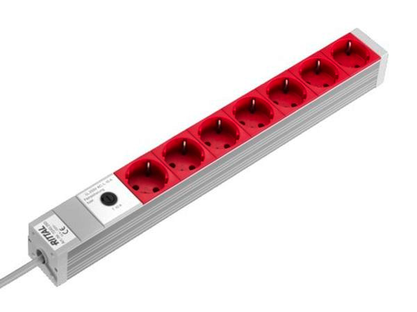 DK Steckdosenleiste, für USV-Stromkreise, rot, Schuko (Typ F, CEE 7/3), 7-fach, 230 V, 10 A, mit G-Sicherung 10 A, LHT: 482,6x44x44 mm