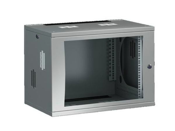 Oberfläche: Pulverbeschichtet in RAL 7035 DK FlatBox, Wand-/Standgehäuse in FlatPack-Verpackung, mit 482,6 mm (19")-Profilschienen, 9 HE, BHT: 600x492x600 mm, 9 HE