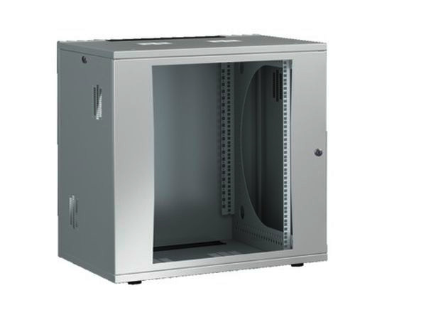 Oberfläche: Pulverbeschichtet in RAL 7035 DK FlatBox, Wand-/Standgehäuse in FlatPack-Verpackung, mit 482,6 mm (19")-Montagerahmen, 12 HE, BHT: 600x625x600 mm