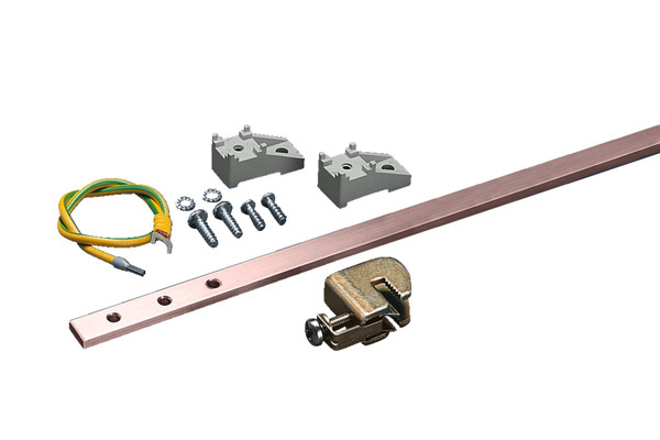 mit beiliegenden Erdungsleitern können die Kabelabfangbügel der Patch-Panel sternpunktförmig geerdet werden, Erdungsklemmen variabel verstellbar, Strombelastbarkeit der Schiene ca. 200 A, vertikal, für DK-TS, Lieferumfang: Erdungsschiene aus E-Cu 57 nach DIN EN 12 163, DIN EN 13 601, 15 x 5 mm, 16 Leiteranschlussklemmen 2,5 - 16 mm2, 15 Erdungsleitungen 6 mm2, L = 500 mm, Befestigungsmaterial