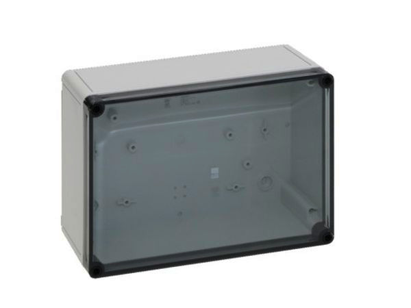 PK Polycarbonat-Gehäuse, BHT: 254x180x90 mm, glasfaserverstärktes Polycarbonat, ohne Vorprägungen, mit Deckel transparent