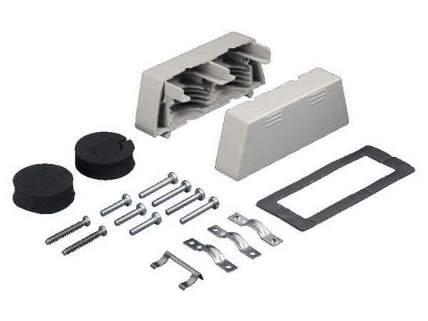 Steckerdurchführung, für Steckerausbrüche (24-polig), Lieferumfang: 1 Satz = 2 Halbschalen, inkl. Dichtungen, mit Befestigungsklammer, zum Durchführen von 2 vorkonfektionierten Kabeln durch den Steckerausbruch, ohne den Kabelstecker zu demontieren, für Kabeldurchmesser von 8 - 36 mm