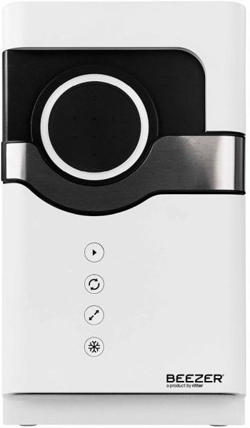 patentierte Technologie: kalte Getränke auf Knopfdruck mindestens 10x schneller als eine Gefriertruhe. Nach einer einmaligen Vorkühlphase von ca. 10 Min. einsatzbereit. Mit Kompressortechnologie und Umluftsystem, wird mit kalter Luft von unter -30 Grad Celsiusgearbeitet, die Flasche wird extrem schnell und kalt umströmt, wodurch dem Getränkdie Wärmeenergie entzogen wird - erzwungene Konvektion, zusätzlich rotiert die Flasche während des Kühlvorgangs, für eine besonders homogene Kühlung. Intuitive Benutzeroberfläche mit LED-Ring und vier Knöpfen, auch einfache Steuerung per BEEZER® Connect möglich