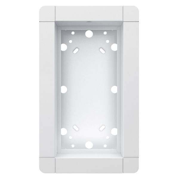 Rahmen bestückbar mit 2 Portier Funktionsmodulen. Abmessungen UP-Gehäuse 130x226x50mm (BxHxT). Abmessungen UP-Rahmen 141x239x7mm (BxHxT). Farbe weiß.