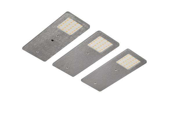 | Kurzbeschreibung | LED-Unterbauset "DF-1909", 3er Set, mit IR-Sensor-Schalter, Alu-Gebürstet |