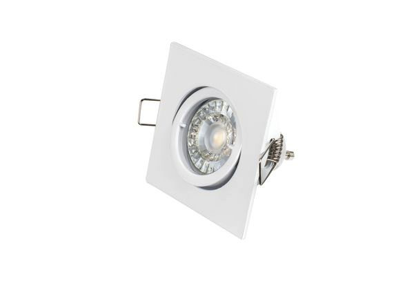 12V, max. 50W, MR-16 Fassung, schwenkbar, mit Bajonettring, Zamack-Druckguss, Bohrloch: 68mm ; Einbautiefe: min. 26mm ; Außenmaß: 85 x 85mm