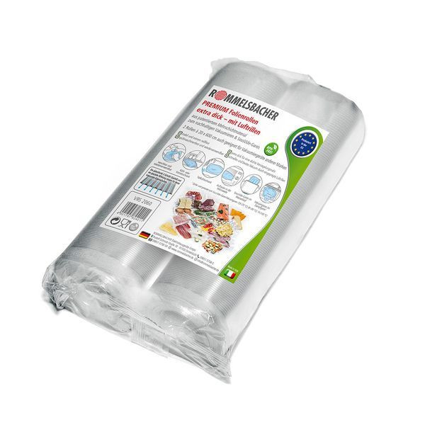 für Rommelsbacher Vakuumierer, 4-lagige Folienqualität, daher besonders reißfest und luftundurchlässig, es entsteht kein Gefrierbrand, geeignet für die Lagerung von Lebensmitteln in der Tiefkühltruhe und im Kühlschrank, geschmacksneutral, kochbeuteltauglich, mikrowellentauglich, lebensmittelecht, geruchsneutral, spülmaschinentauglich, daher wiederverwendbar, 2 Rollen á 20 x 600 cm