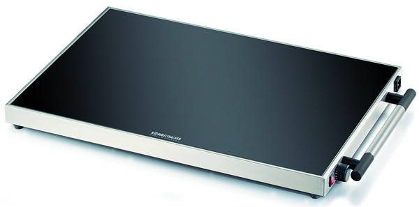 Profi Equipment, pflegeleichtes Gehäuse aus gebürstetem Edelstahl, thermisch gehärtetes Sicherheits-Floatglas mit integriertem Heizsystem für effiziente Wärmeverteilung, stabiler Edelstahlgriff, Warmhaltefläche 61 x 41 cm, passend für einen Gastro-Behälter im 1/1 GN Format und dessen Unterteilungen, Ein/Ausschalter mit integrierter Kontrolllampe, Temperatur über Thermostat stufenlos regelbar von ca. 40 °C bis 105 °C, mehrere Geräte in Tandemposition nebeneinander kombinierbar, abnehmbares XXL Kabel (2,5 m) mit Schukostecker, platzsparende senkrechte Aufbewahrung, Made in Germany