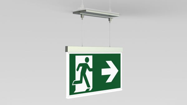 Moderne Zink-Druckguss Rettungszeichenleuchte mit Seilabhängung zur Deckeneinbaumontage. Die Kennzeichnung der Rettungs- und Fluchtwege kann wahlweise ein- oder beidseitig erfolgen. Sie gehört zur Leuchtenfamile der A-Serie, die Lösungen für jede Montageart bereithält und für ihr einheitliches, geradliniges Design mit dem German Design Award ausgezeichnet wurde. Zwei gewünschte Piktogramme (Pfeil rechts, links, oben, unten oder weiß) sind standardmäßig im Lieferumfang enthalten.