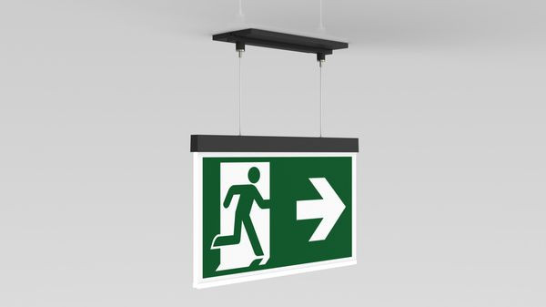 Moderne Zink-Druckguss Rettungszeichenleuchte mit Seilabhängung zur Deckeneinbaumontage. Die Kennzeichnung der Rettungs- und Fluchtwege kann wahlweise ein- oder beidseitig erfolgen. Sie gehört zur Leuchtenfamile der A-Serie, die Lösungen für jede Montageart bereithält und für ihr einheitliches, geradliniges Design mit dem German Design Award ausgezeichnet wurde. Automatische Überwachung der Sicherheitsleuchte mit SelfControl. Zwei gewünschte Piktogramme (Pfeil rechts, links, oben, unten oder weiß) sind standardmäßig im Lieferumfang enthalten.
