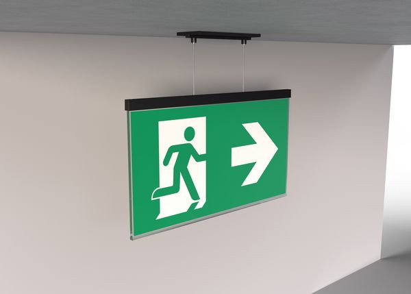 Moderne Zink-Druckguss Rettungszeichenleuchte mit Seilabhängung zur Deckeneinbaumontage. Die Kennzeichnung der Rettungs- und Fluchtwege kann wahlweise ein- oder beidseitig erfolgen. Sie gehört zur Leuchtenfamile der A-Serie, die Lösungen für jede Montageart bereithält und für ihr einheitliches, geradliniges Design mit dem German Design Award ausgezeichnet wurde. Kabelllose zentrale Steuerung und Überwachung für große Installationen von bis zu 50.000 Leuchten mit Wireless Professional. Zwei gewünschte Piktogramme (Pfeil rechts, links, oben, unten oder weiß) sind standardmäßig im Lieferumfang enthalten.